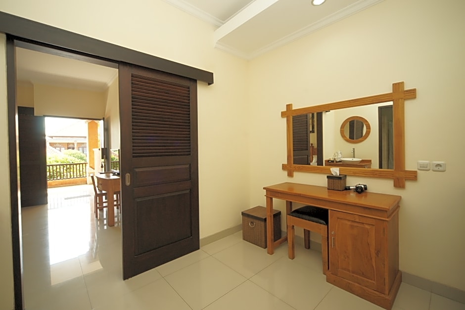 Sun-loving travelers will discover a breezy oasis beside the pools. An outdoor pool invites year-round swims with a shallow end perfect for easy splashes, while a separate kids-only pool keeps the little ones giggling and safe. Framed by a sun deck, a lush garden, and a quiet terrace, it’s easy to unwind after a day of exploring Sanur.